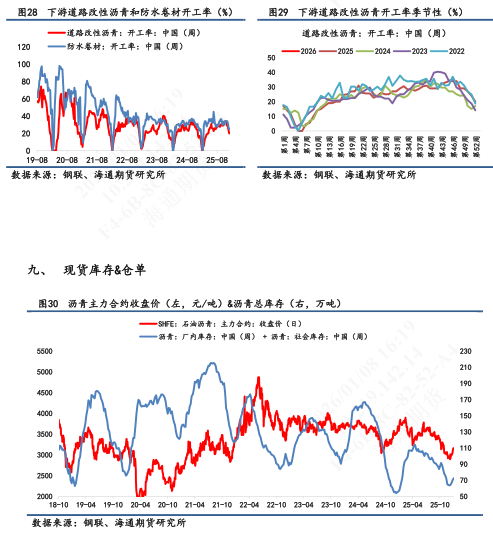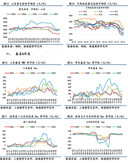【2】现货市场:①山东重交沥青市场价为3070元/吨,环比持平,7天累计+5.1%。山东基差为-62元/吨,7天累计+13元/吨。②华东重交沥青市场价为3170元/吨,环比持平。华东基差为+28元/吨,7天累计-37元/吨。