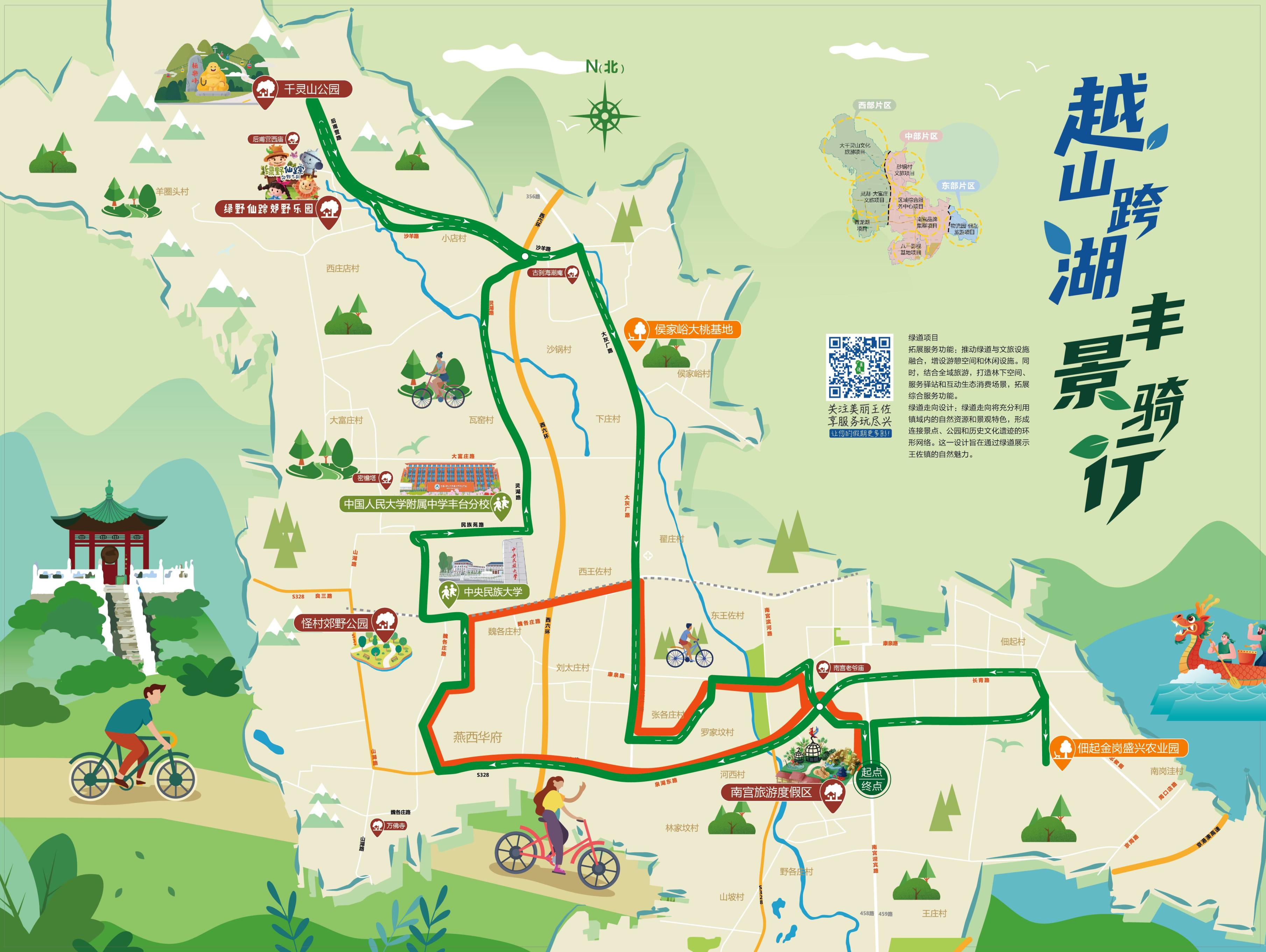 这条环线骑行道,是由丰台区体育局与王佐镇联合打造的,以国家4A级旅游景区——南宫旅游休闲度假区的南宫世界地热博览园为起终点,串联起山林、湖泊、古迹、高校与乡村等多元场景,展现了丰台区王佐镇“生态+文化+休闲”的独特魅力,沿途还有怪村郊野公园、绿野仙踪郊野乐园为亲子骑行提供了趣味互动空间,为市民提供了户外休闲新选择。